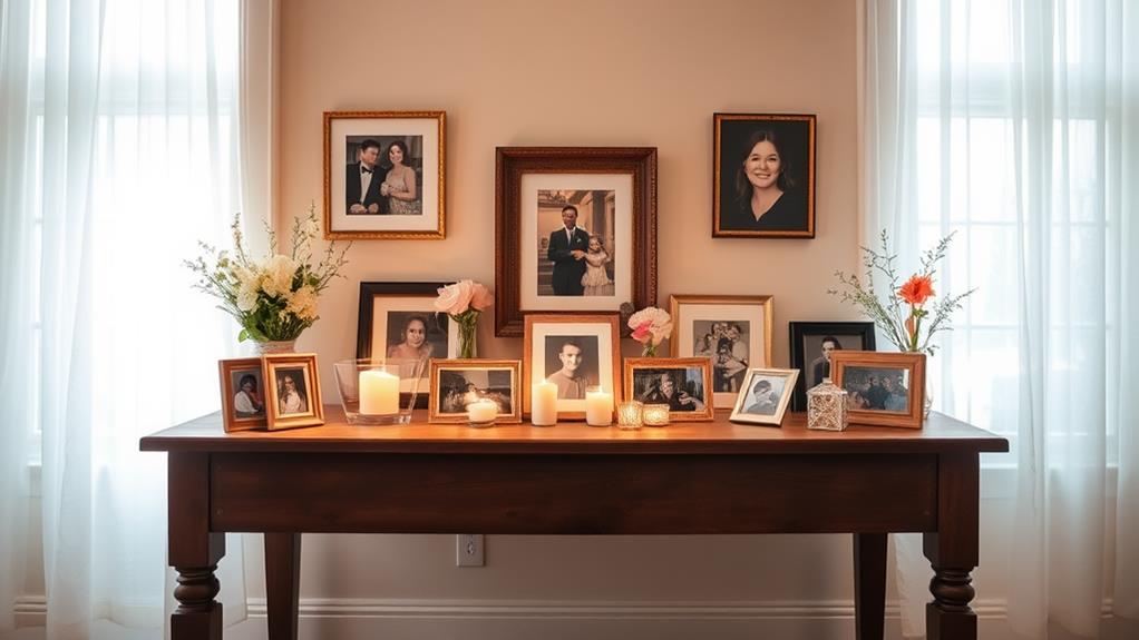 Start by gathering memory photos that depict special moments, achievements, and cherished times spent with family and friends. Arrange these photos thoughtfully to tell a visual story that resonates with everyone who attends. You might also consider funeral wreaths and flowers to adorn the table, highlighting their significance and adding beauty to the display.