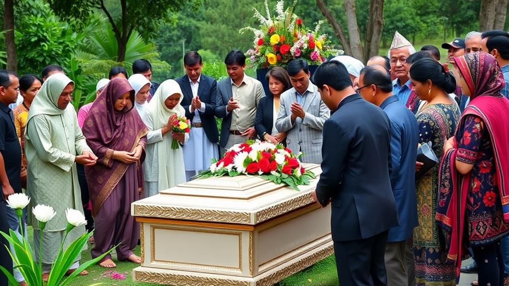 Consult with family members and cultural leaders to guarantee that all customs are accurately represented. By doing so, you help create a meaningful and dignified farewell that resonates with everyone present, honoring the life and legacy of the departed in the most respectful way.